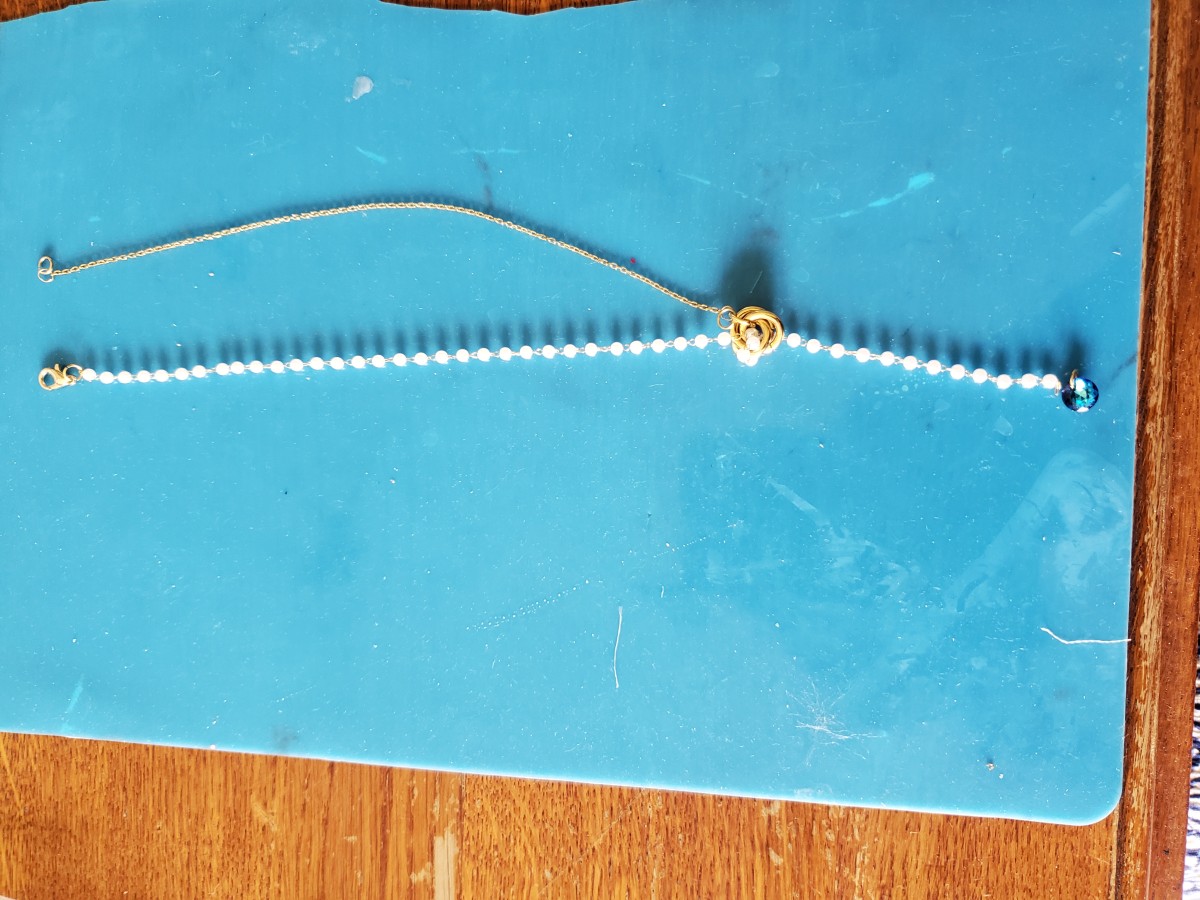En los otros dos extremos, añade una anilla de 5x0,8 y coloca el cierre en una de las dos cadenas.