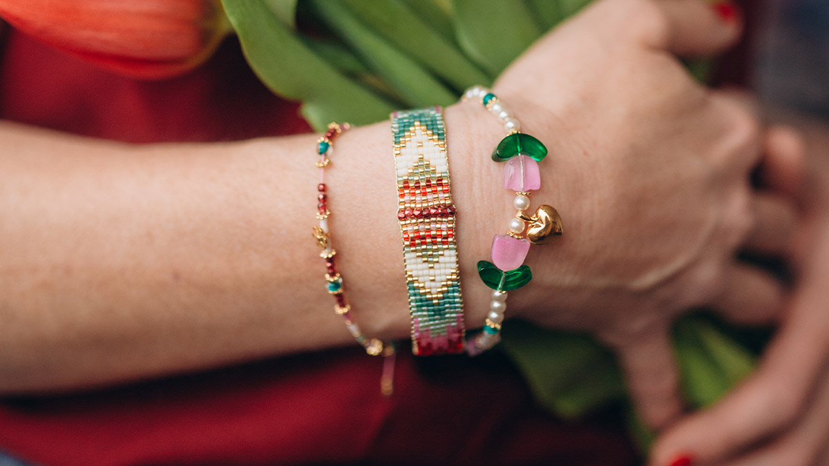 Este juego de pulseras de cuentas de cristal y de rocalla es perfecto para dar un toque de color a los primeros días. Póntelas con una blusa sencilla, un top burdeos o esmeralda, o con un bonito jersey esponjoso rosa pastel. Combinan con tantos colores diferentes.