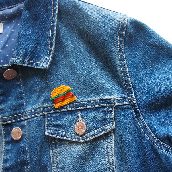 Emeline del blog Les agrumes ha preparado un tutorial especial "Nueva York" en el que podrás utilizar cuentas Miyuki Delicas para tejer una hamburguesa, ¡el plato 100% americano por excelencia!Este tejido, realizado con la técnica del punto de ladrillo, está montado sobre un broche, para que puedas dar el toque final a tu atuendo.